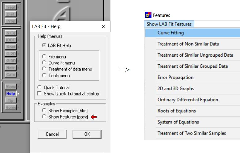 Topics covering the main features of LAB Fit available through the "software's visual Help": LAB Fit Features